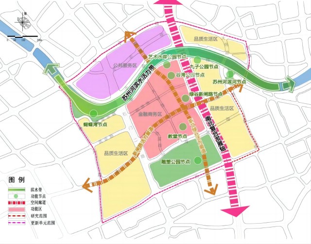 根据设计方案,更新单元将有一处“蝴蝶湾公园”,充分展示苏河十八湾的历史意蕴和江南神韵,结合滨河双翼舒展的基地空间和苏河流水绵长之势,精心打造“苏河蝶恋”园。