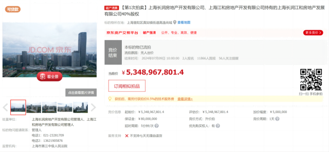 公开数据显示,本次拍卖起拍价53.48亿,仅2人报名,11,866人围观 ,但无人出价。